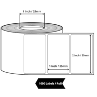 High-Quality Adhesive Barcode Labels. 50 mm x 25 mm x Single UP 1000 Labels in a Roll. Direct Thermal Labels – can be used in direct thermal as well as thermal transfer printers.